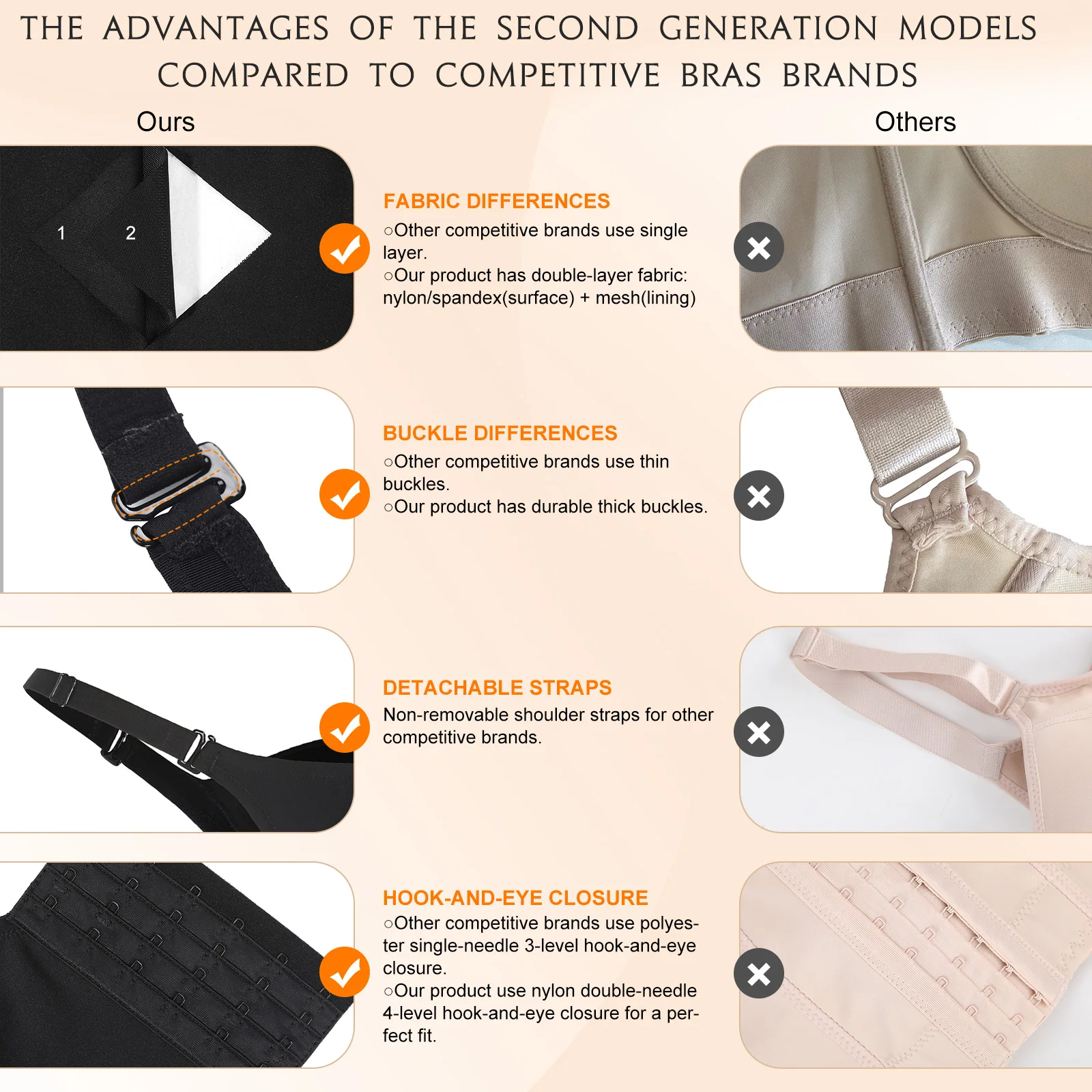 Feature1 | Full back coverage bra to hide your back and side fat, help you correct your posture, and shape your upper body,A full cup design that provides better coverage and lifts breasts |