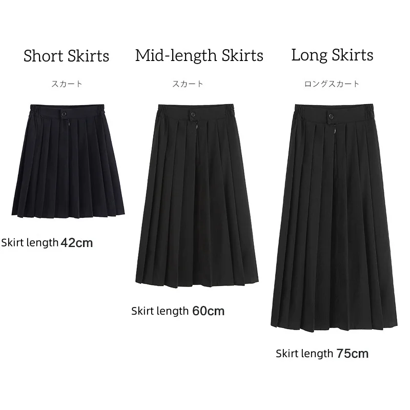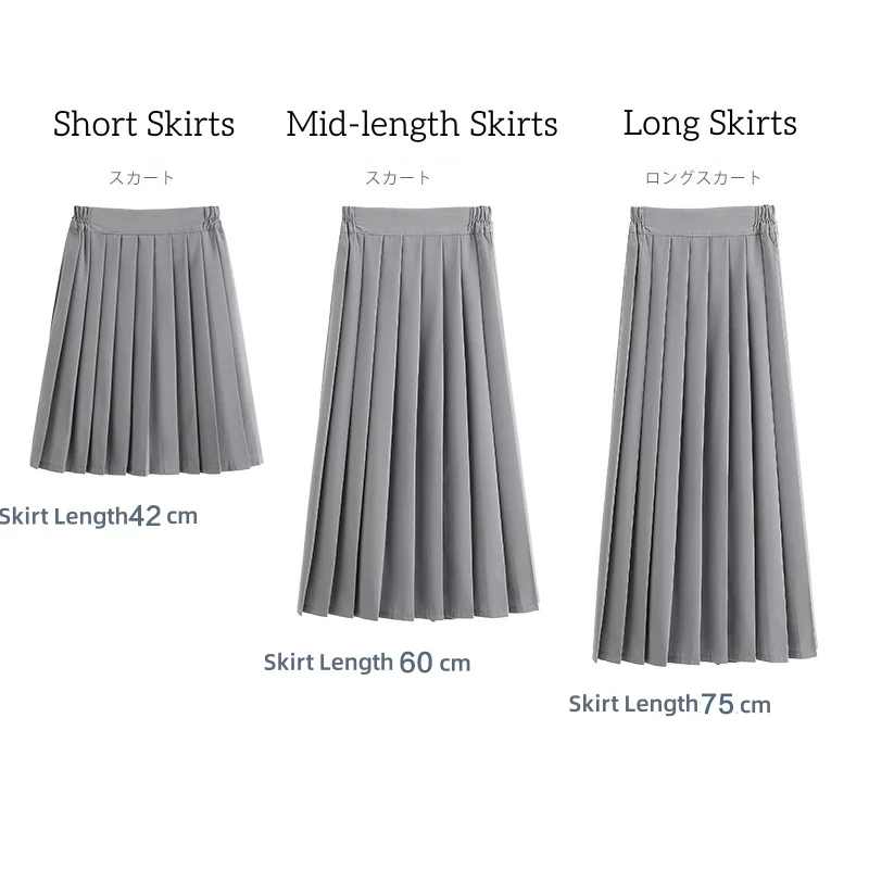 Women Schoolgirls High Waist Pleated Skirts Harajuku 3 Types Lengths Solid Casual Black Gray Korean Style Uniform Skirt School