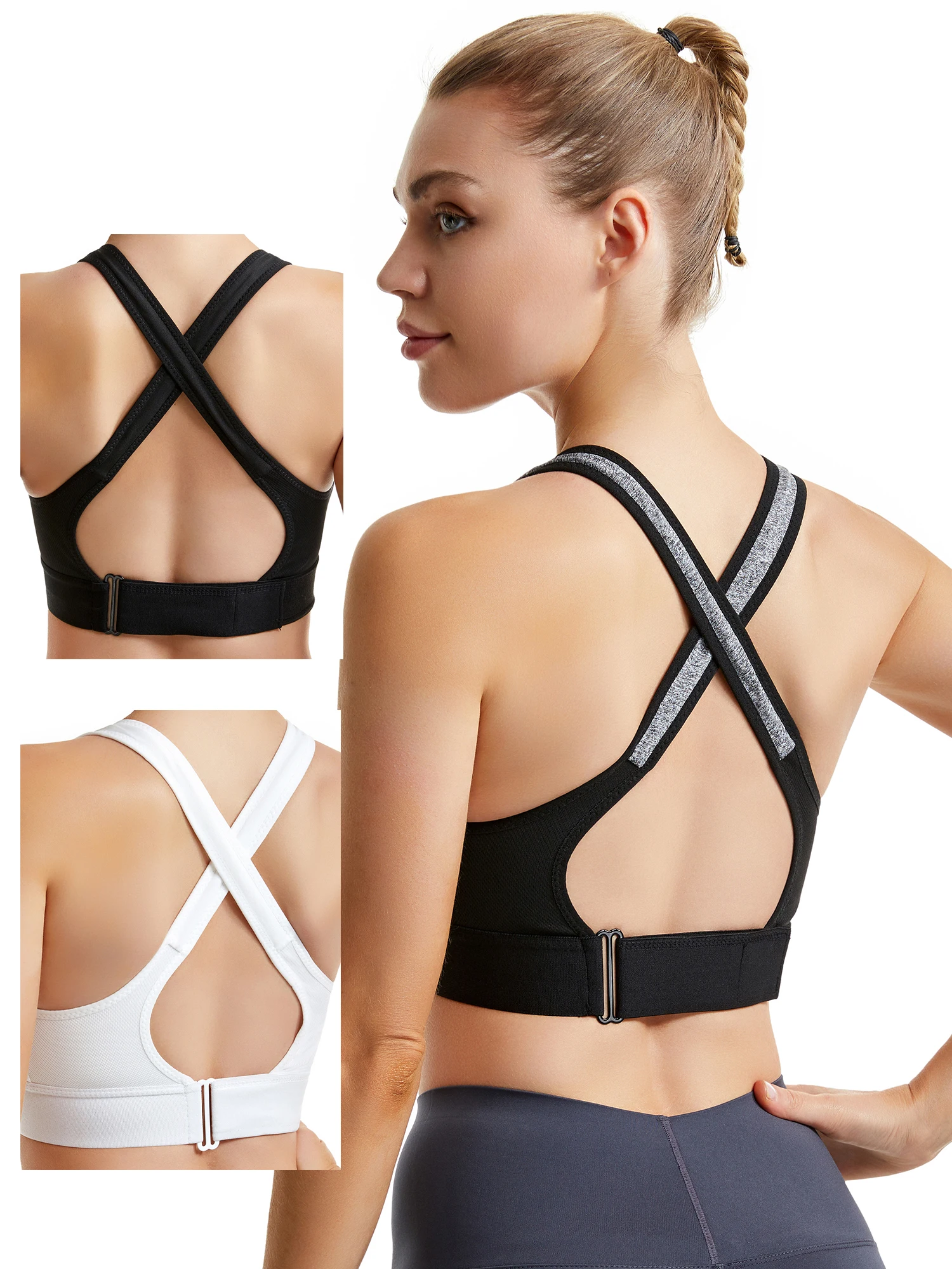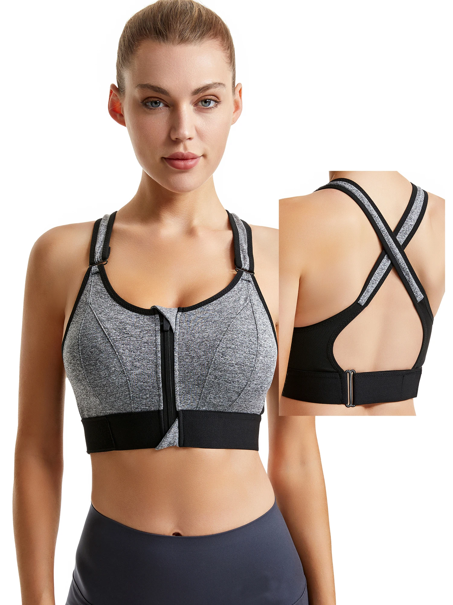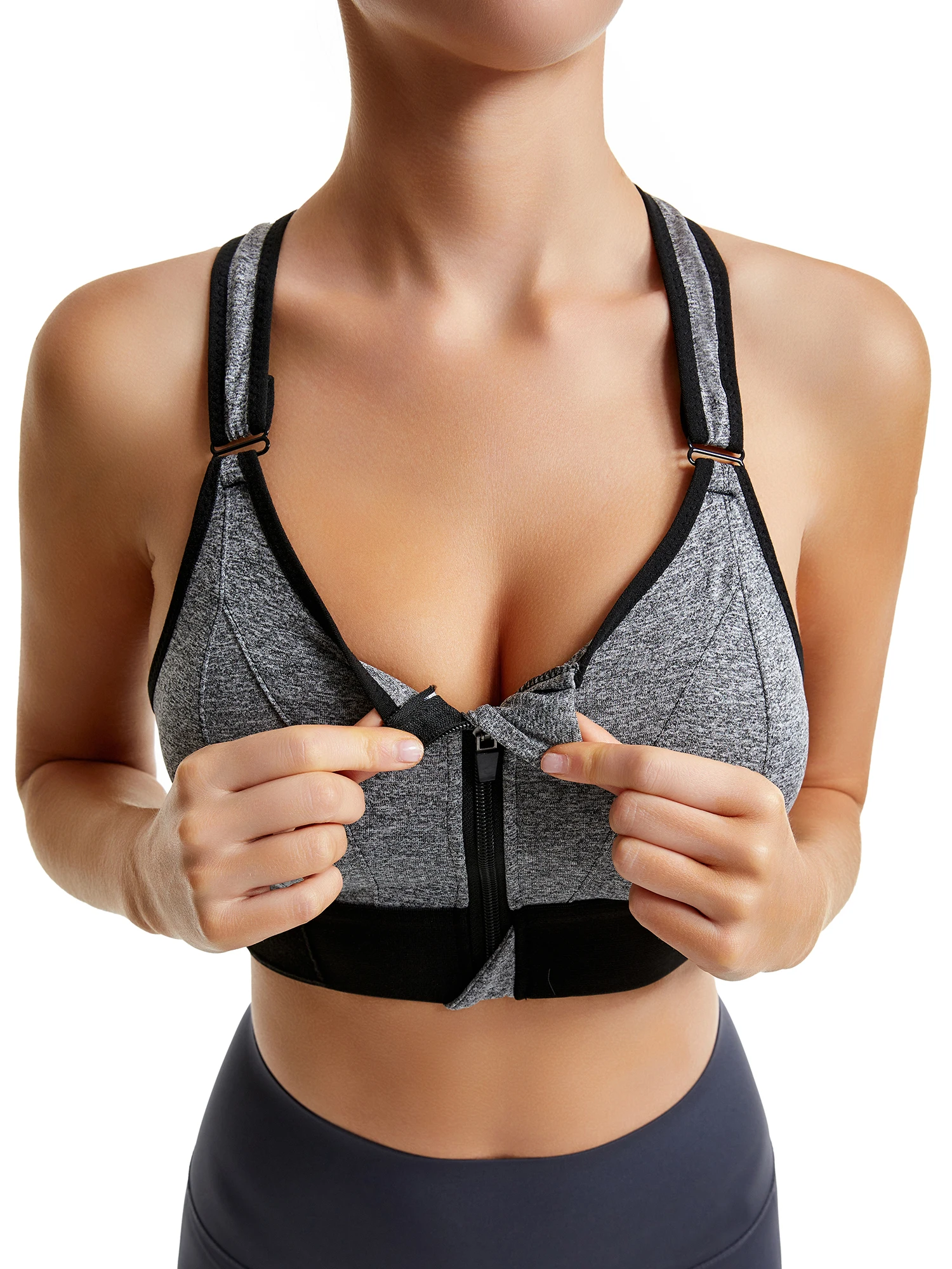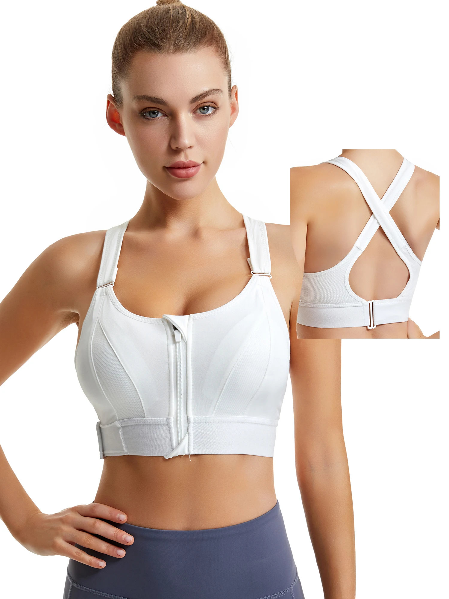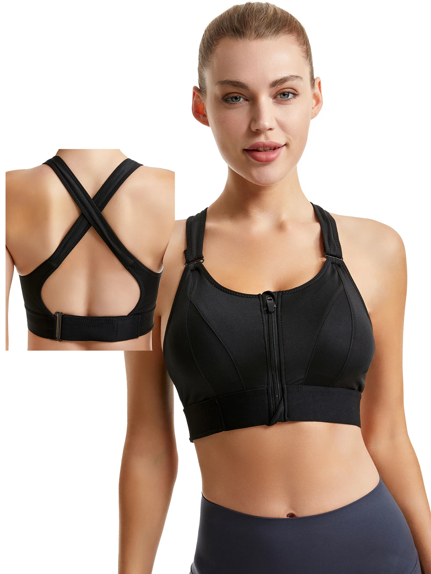Women Sports Bra Crop Top Yoga Vest Front Zipper Plus Size Adjustable Strap Shockproof Fitness Athletic Bralette Women Lingerie