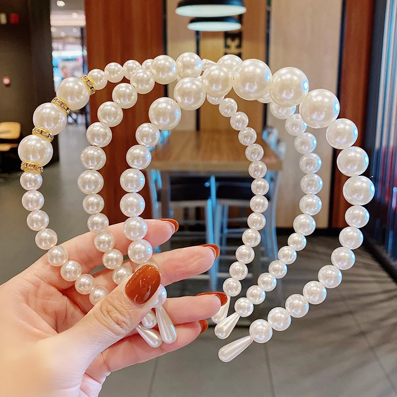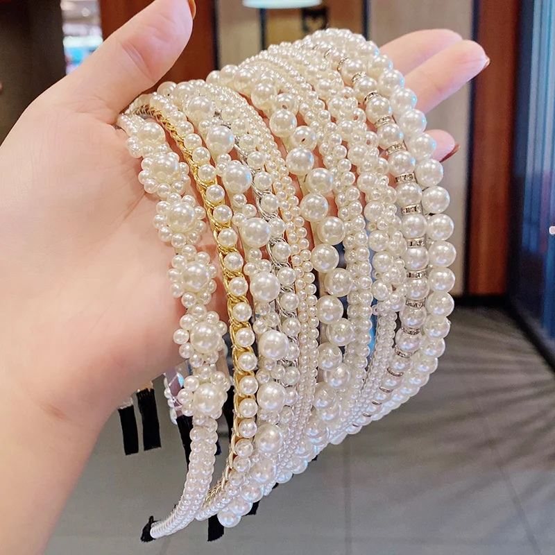 Women Vintage Elegant Full Pearls Simple Metal Hairbands Lady Sweet Hair Decorate Headband Hair Hoops Fashion Hair Accessories