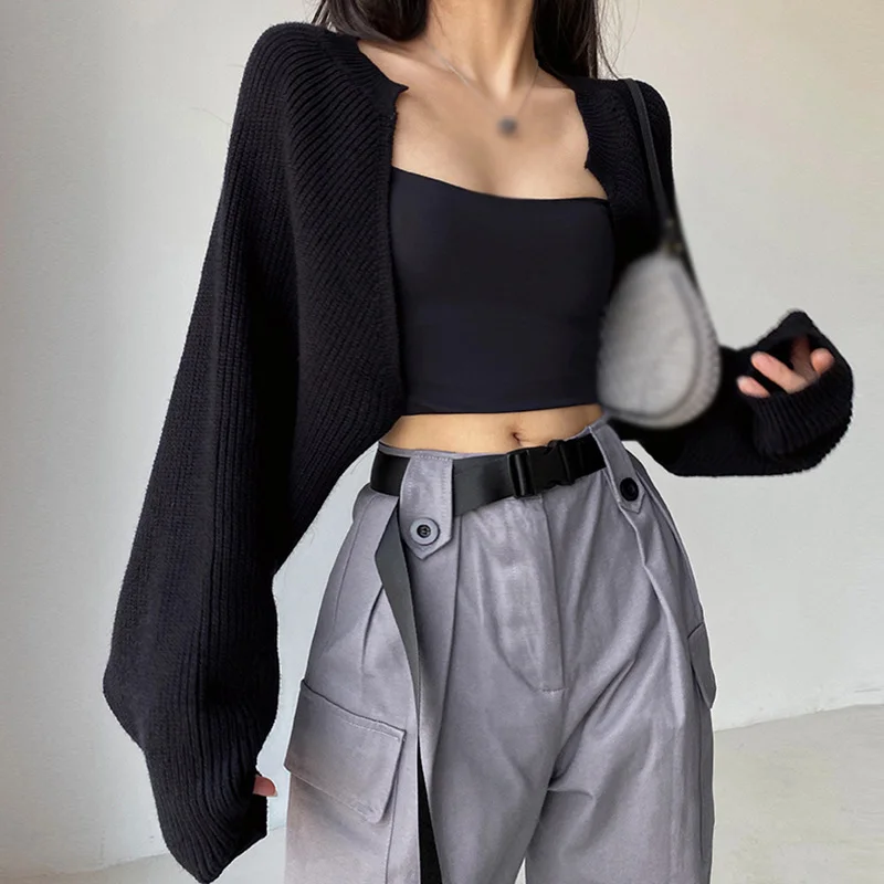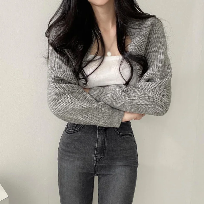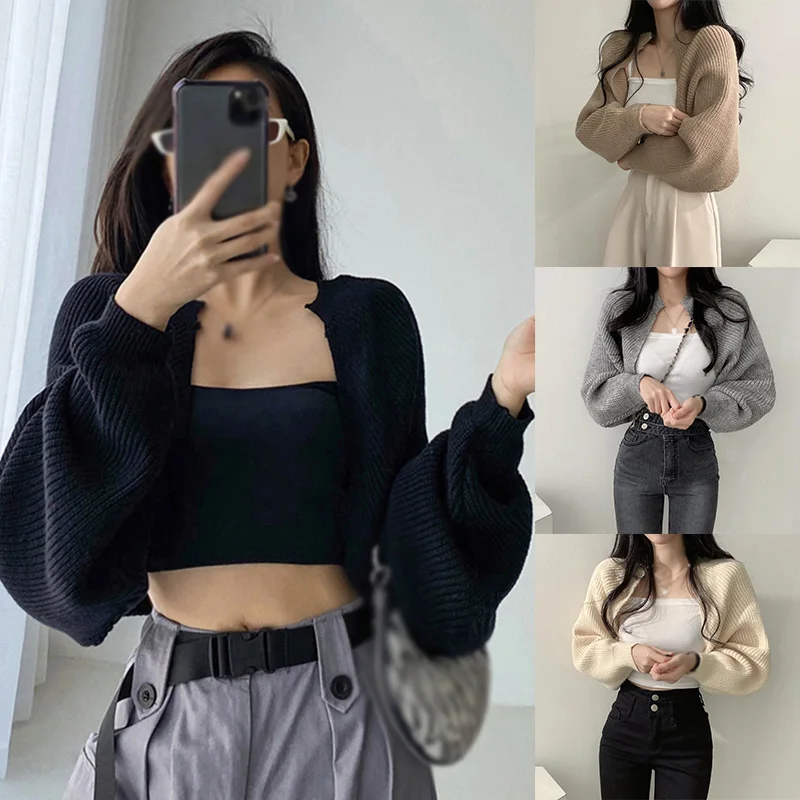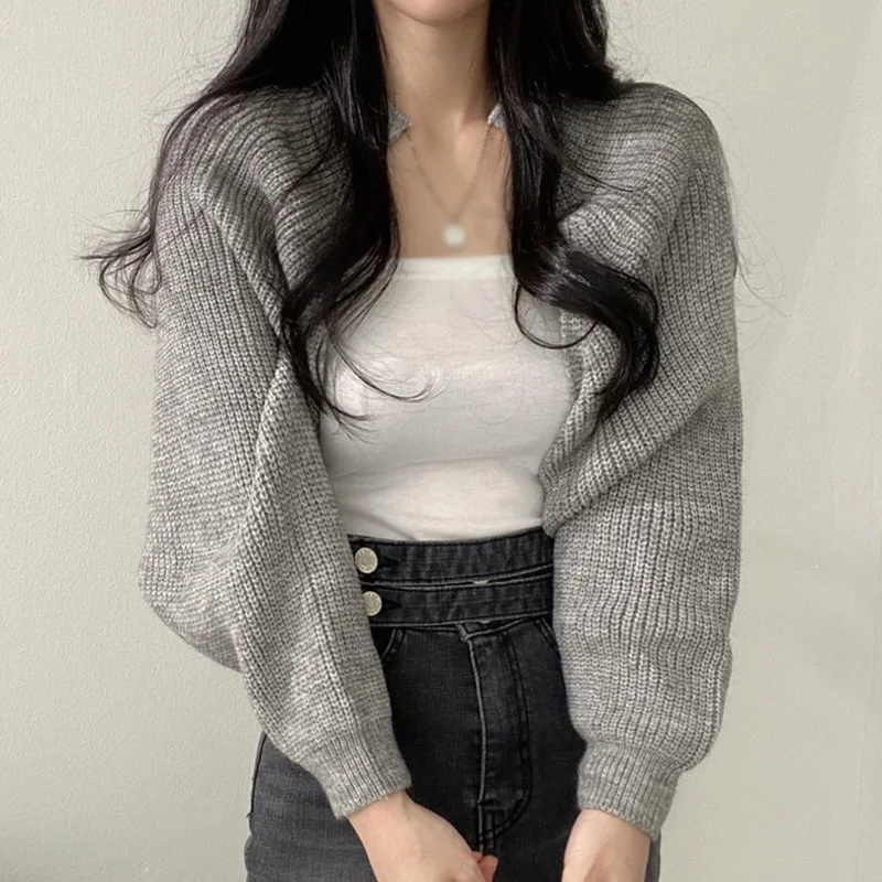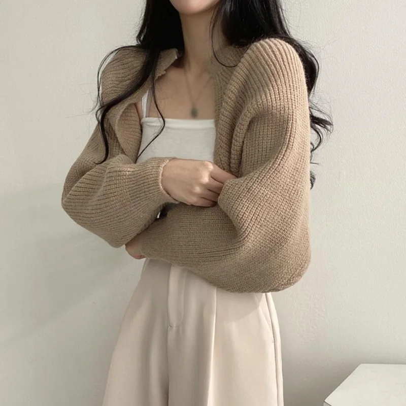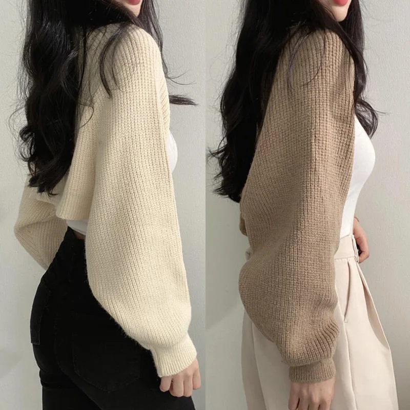 Women’s Cardigans Knitted Long Sleeve Ultra Short Shawl Spring Autumn Sweater