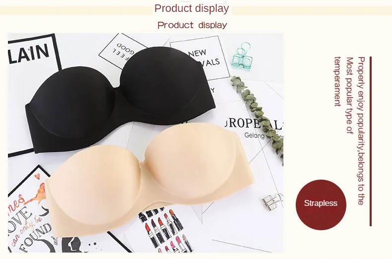 Womens Tube Tops Invisible Strapless Bra Underwear Sexy Solid Seamless Push Up Bra Wireless Mold Cup Bralette Lingerie