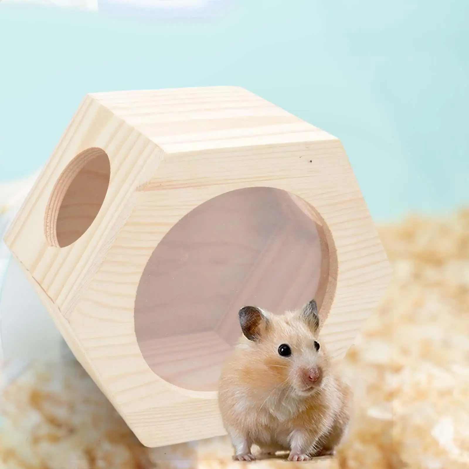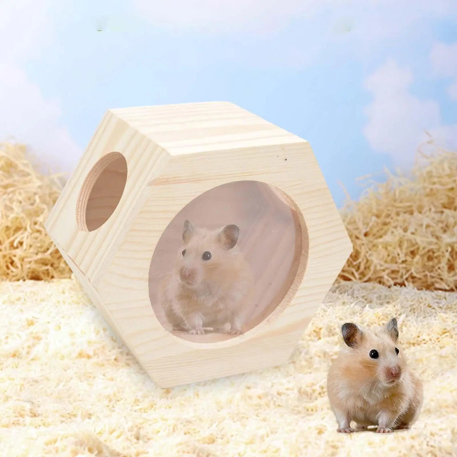 Wooden Hamster House Decor Cabin Hangable Habitats with Window Nest Hexagonal Box for Hedgehog Rat Dwarf Hamster Mice Small Pet
