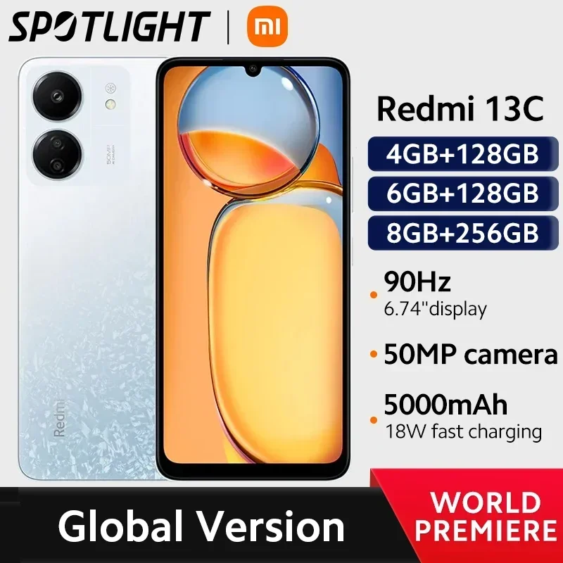 [World Premiere]Global Version Xiaomi Redmi 13C MIUI 14 Smartphone 90Hz 6.74″ Display MTK Helio G85 Octacore 50MP Camera 5000mAh