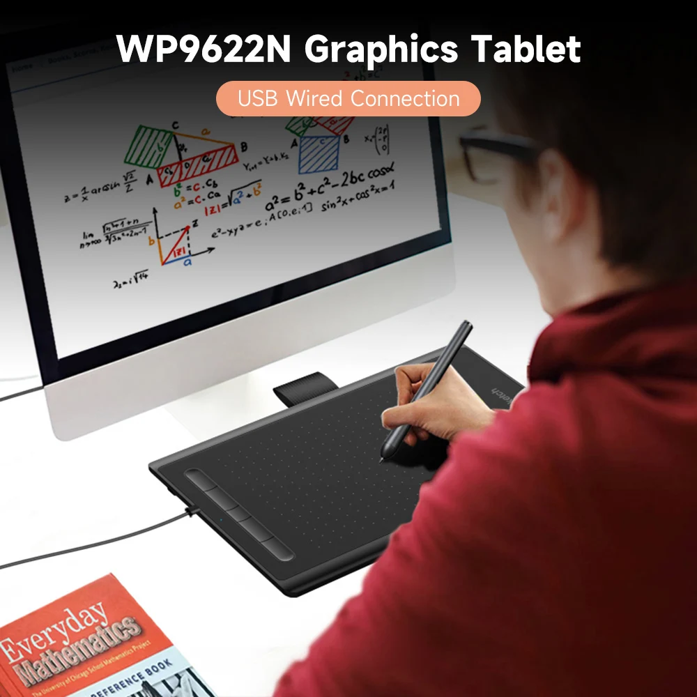 WP9622NB Graphics Tablet Drawing Tablet 8192 Levels Pressure Sensitivity 5080LPI Resolution 230PPS Read Speed 2.4G/BT Connection