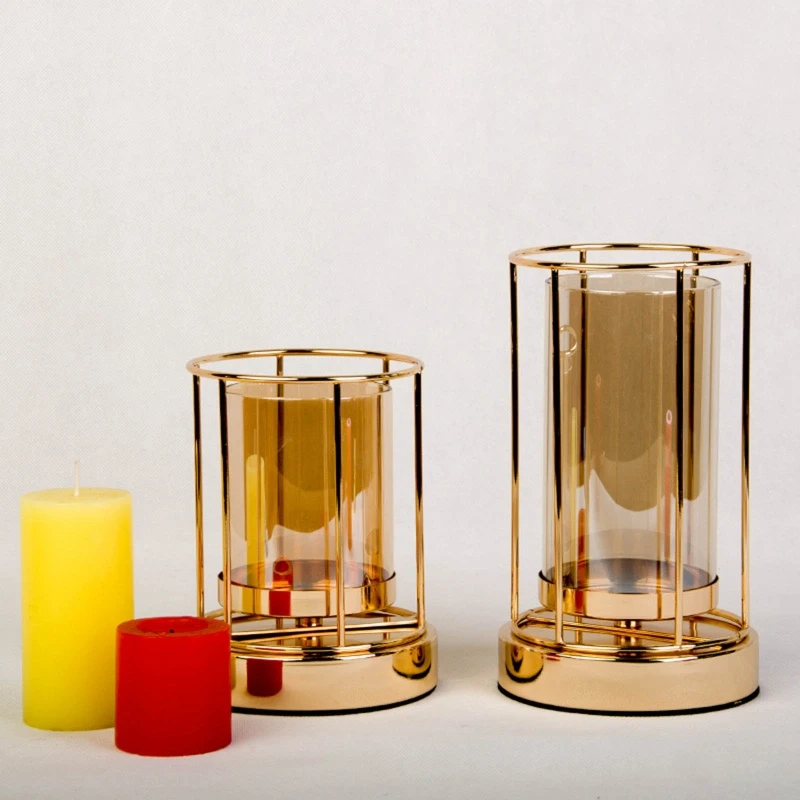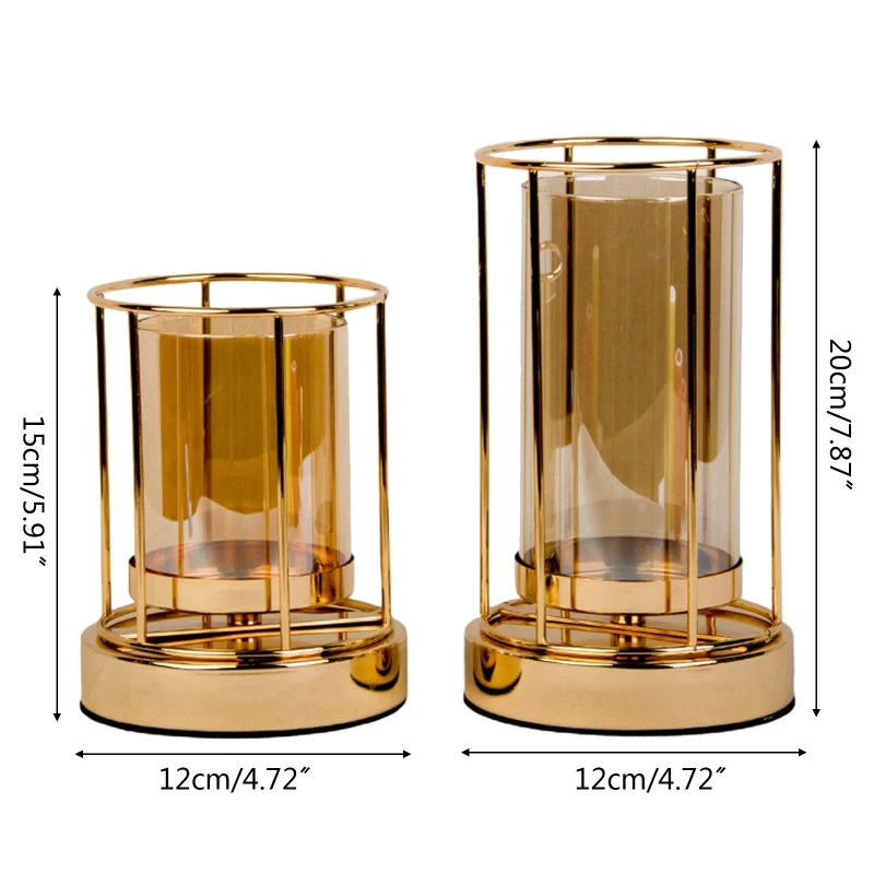 Wrought Iron Candle Holder Electroplating Glass Cup Flower Vase Ornament for Home Wedding Birthday Party Dining Table