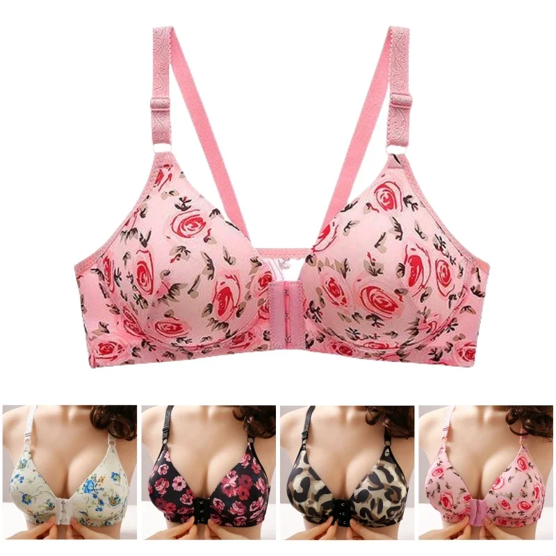 xgnvpy New front button rose print bra without underwire comfort women’s push-up adjuster side breast bra cover