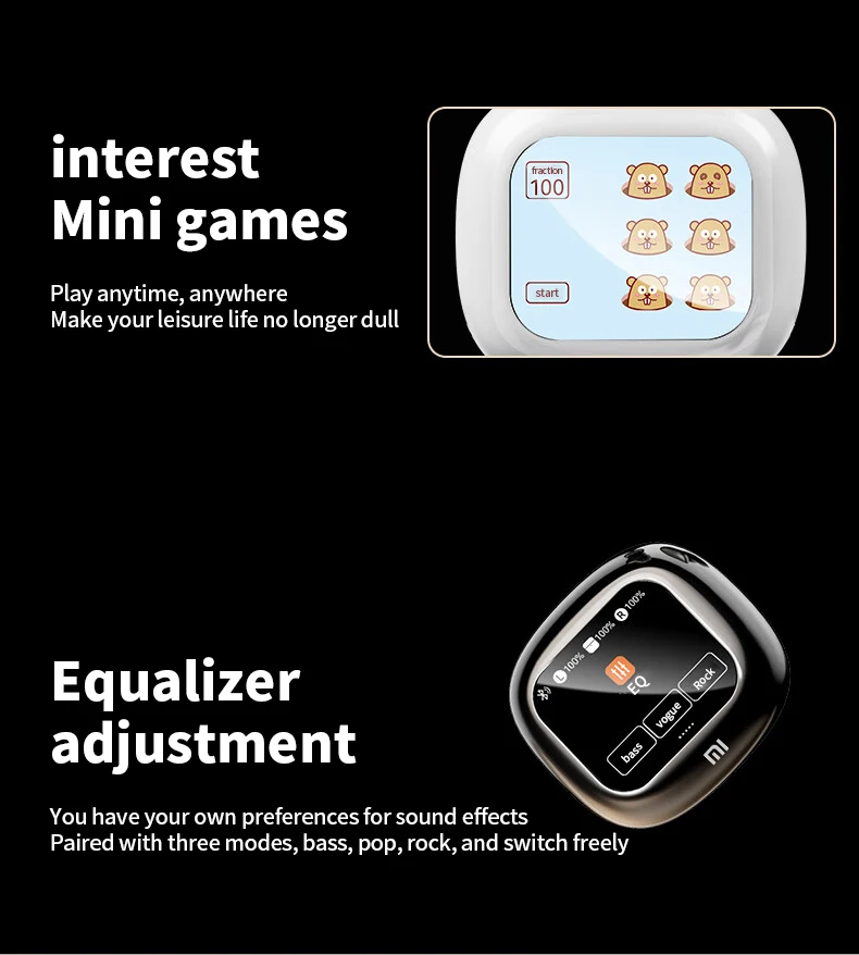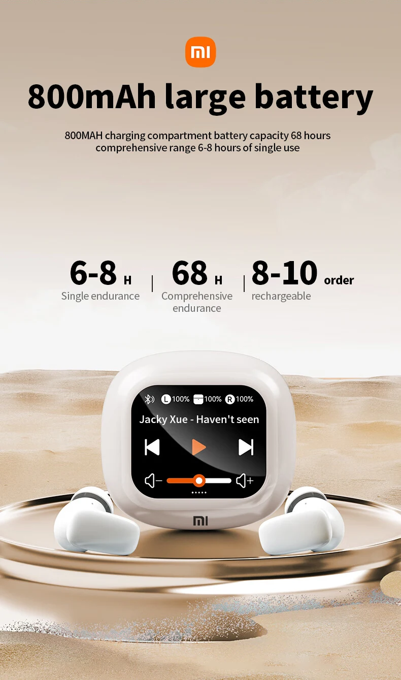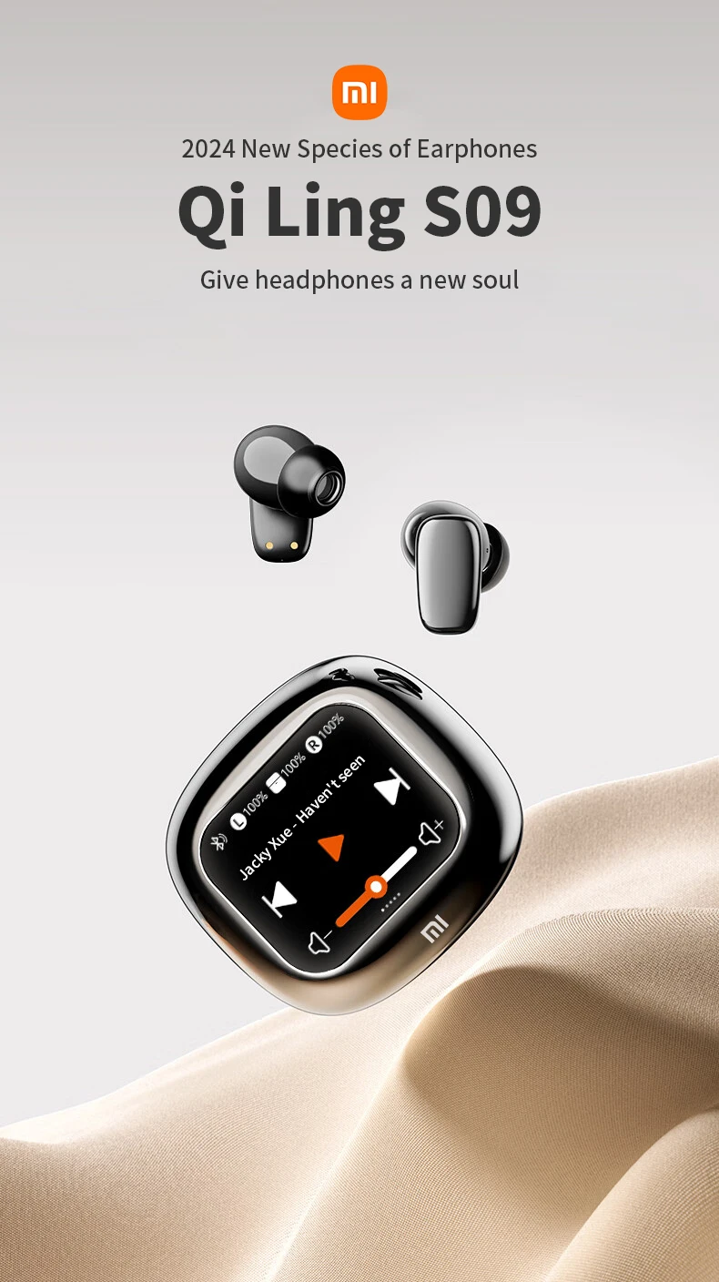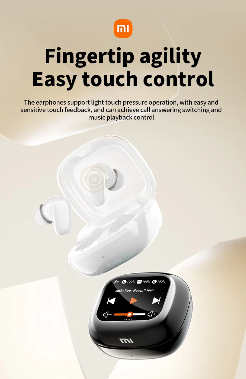 XIAOMI QLS09 ANC Wireless Earphones Bluetooth5.4 9D Sound Headphones Touch Screen Noise Cancelling Support TF Card Earbuds Headet Built-in Mic For Android iOS