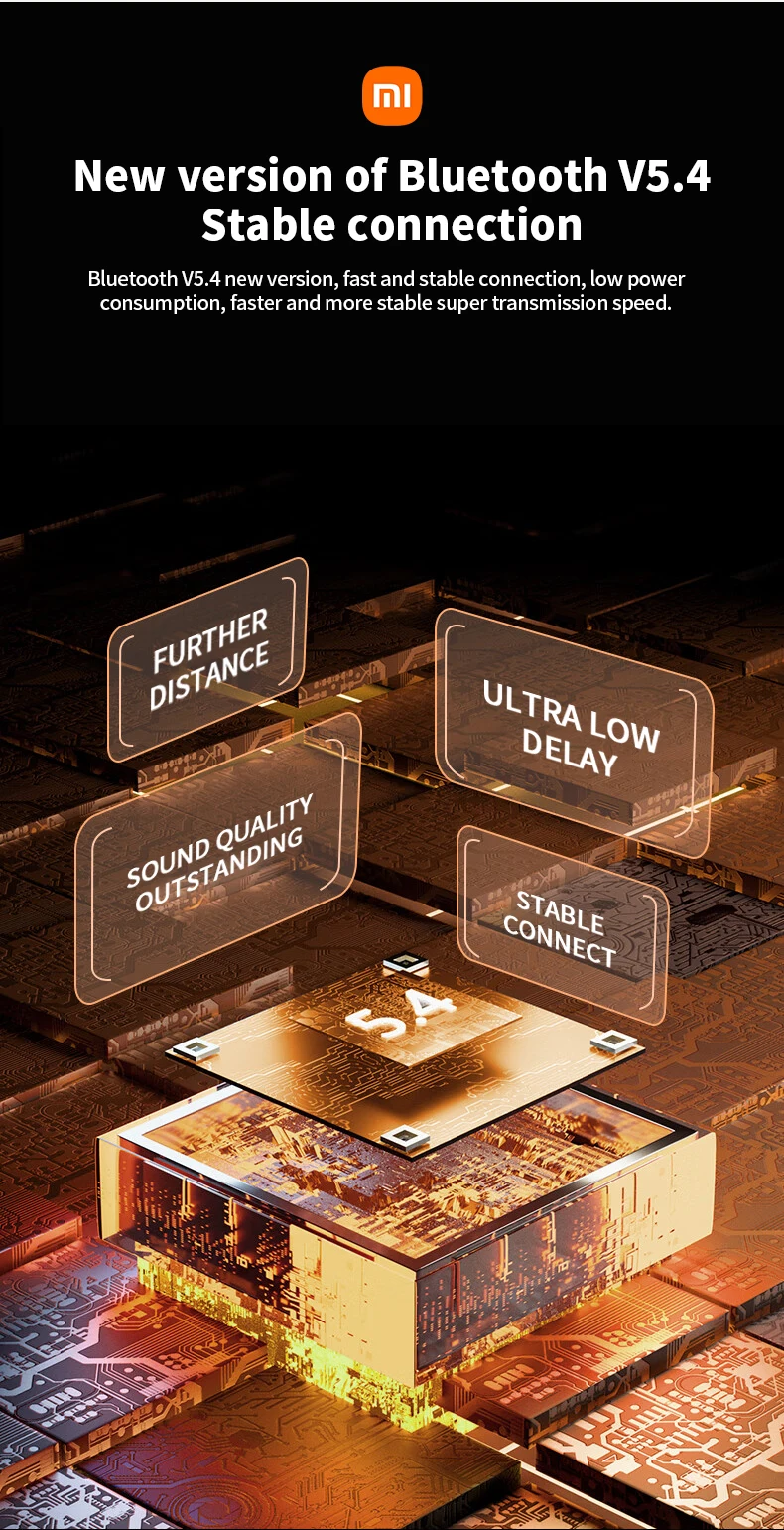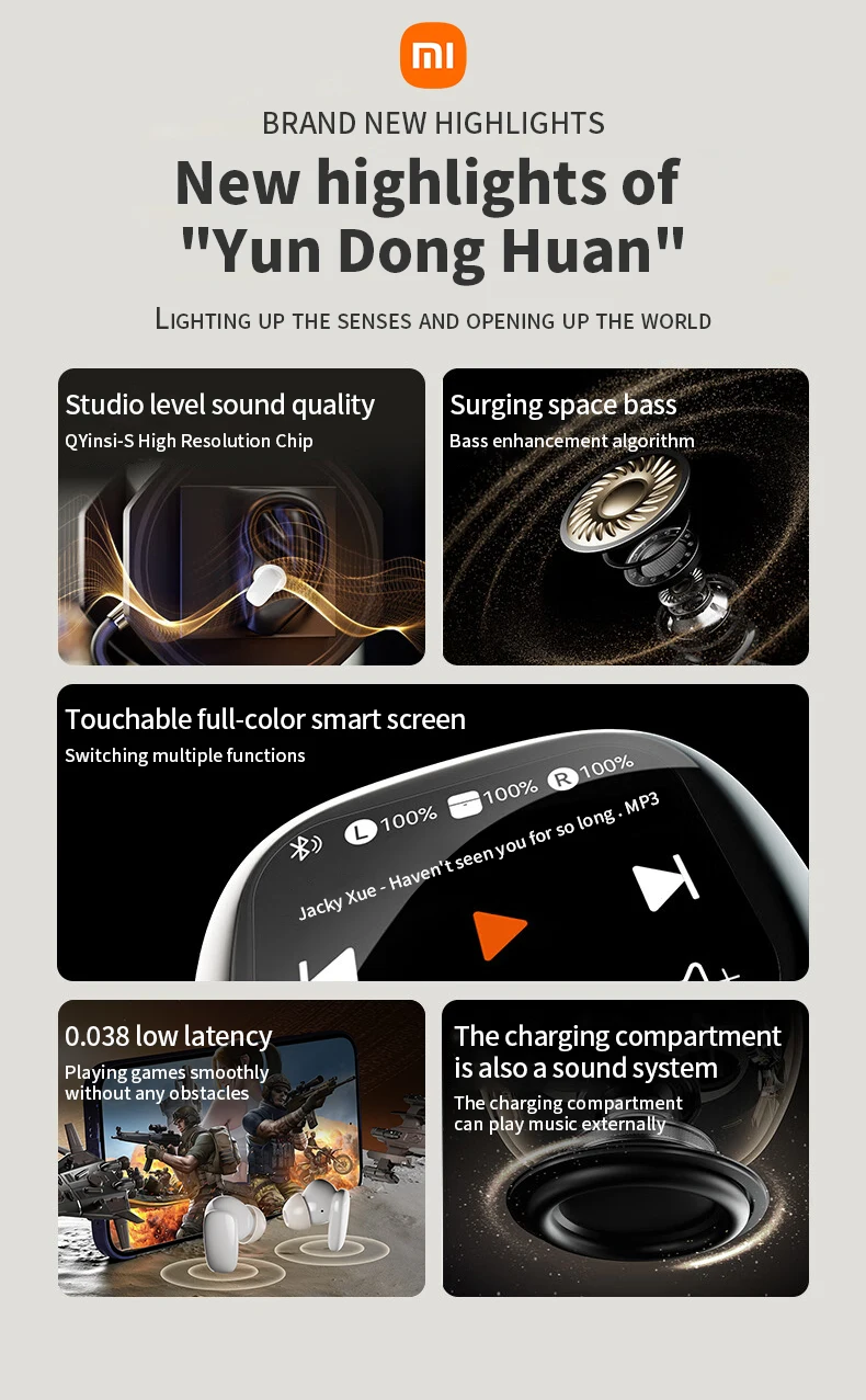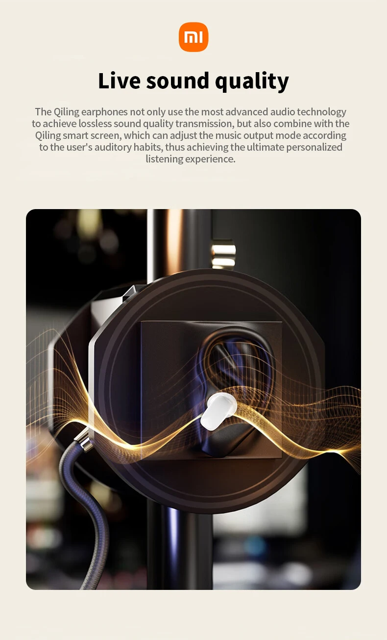 XIAOMI QLS09 ANC Wireless Earphones Bluetooth5.4 9D Sound Headphones Touch Screen Noise Cancelling Support TF Card Earbuds Headet Built-in Mic For Android iOS