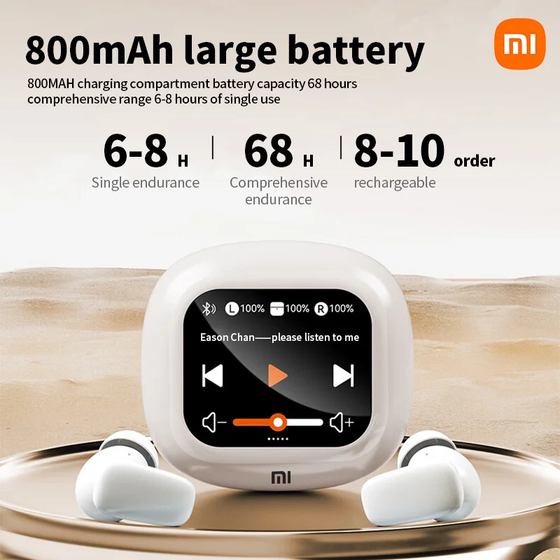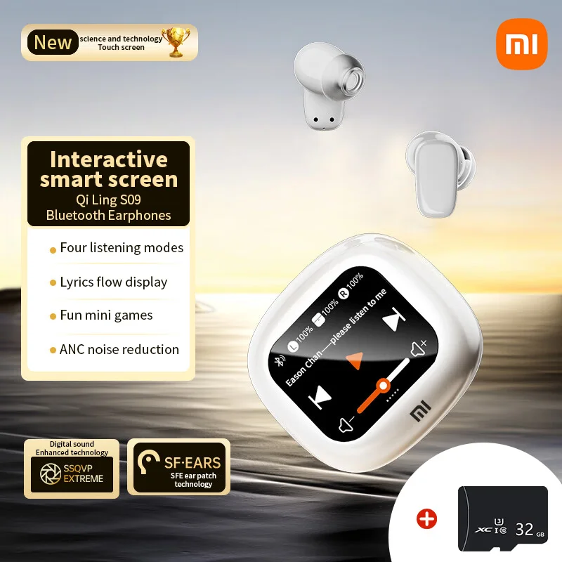 XIAOMI QLS09 ANC Wireless Earphones Bluetooth5.4 9D Sound Headphones Touch Screen Noise Cancelling Support TF Card Earbuds Headet Built-in Mic For Android iOS