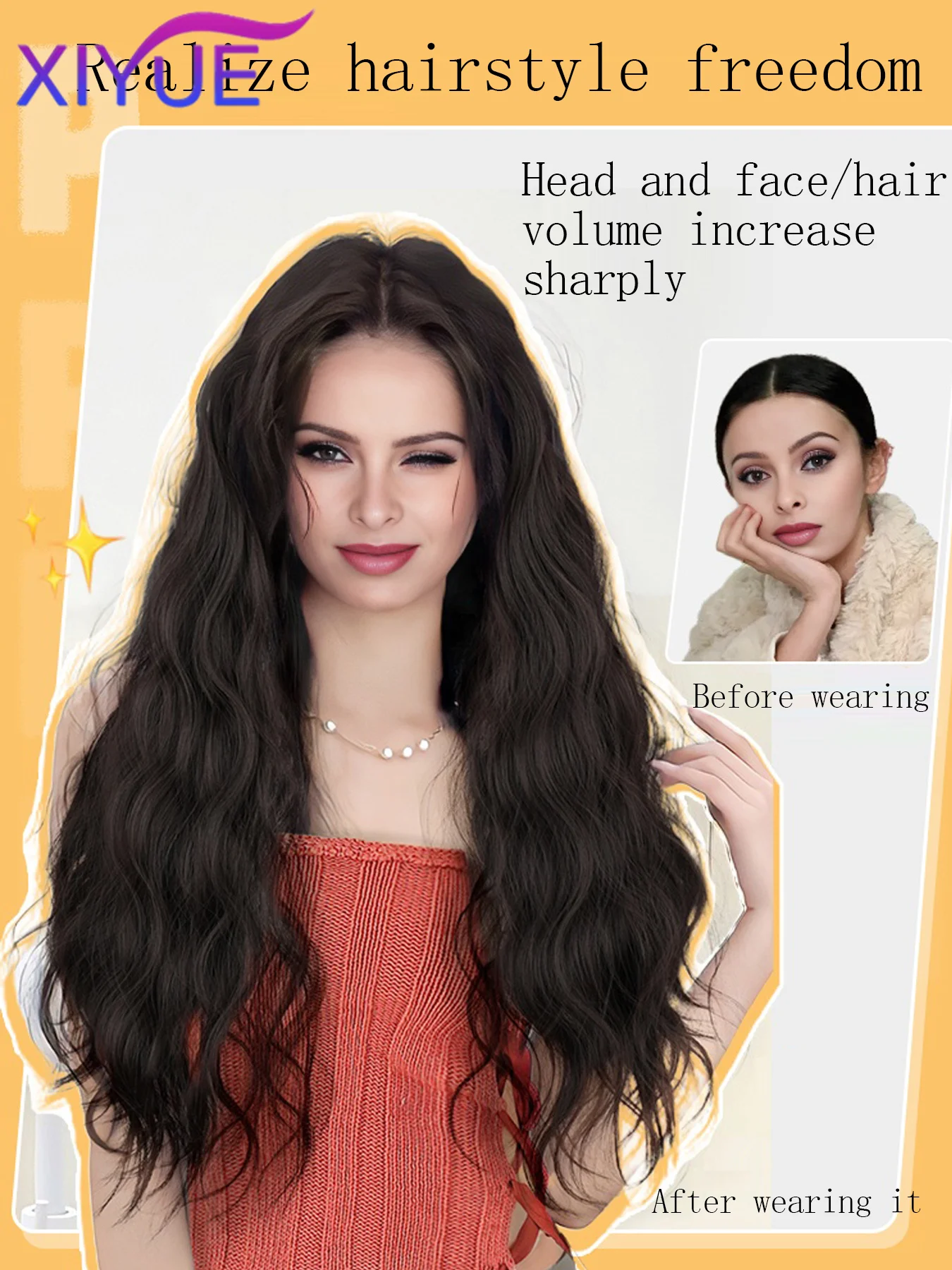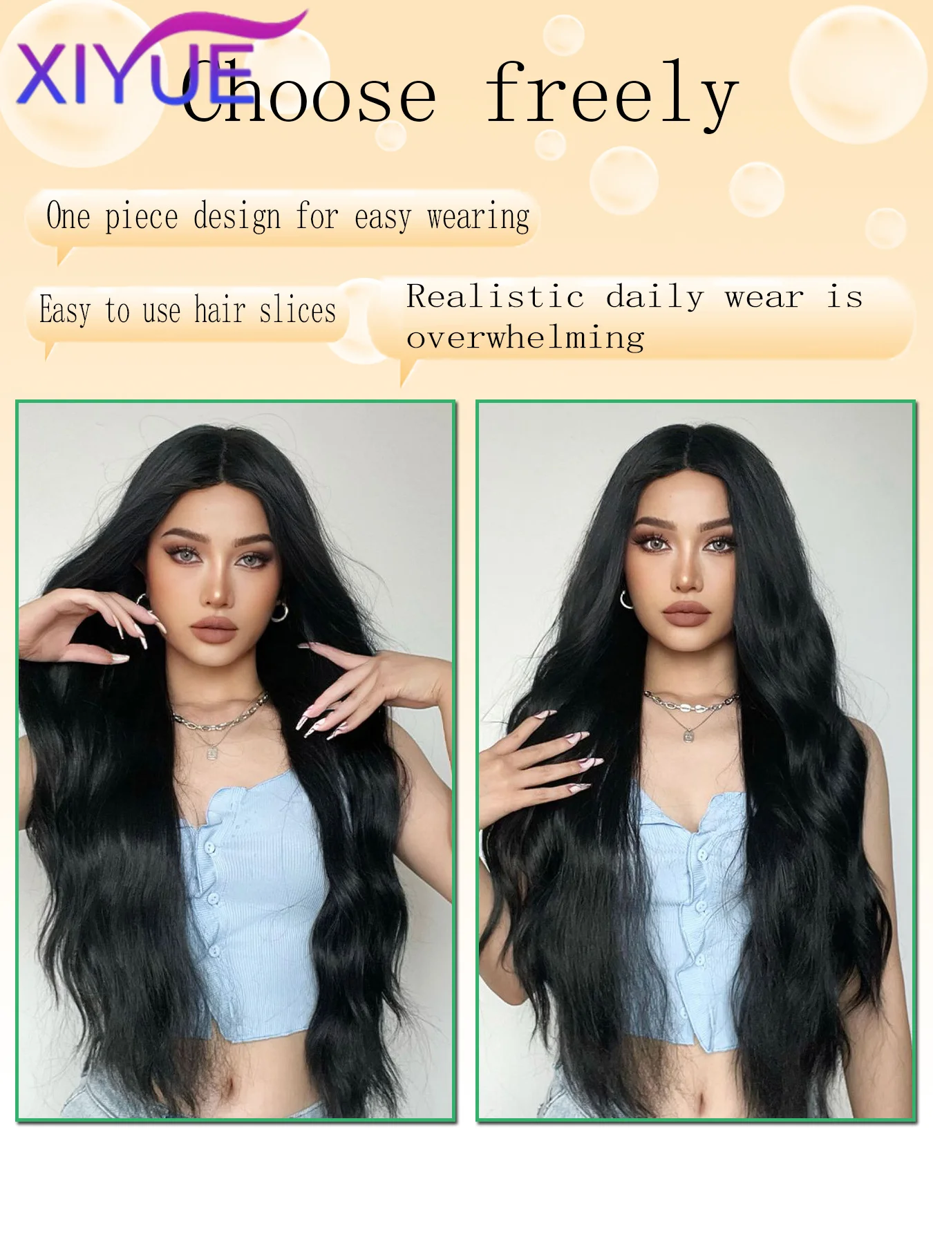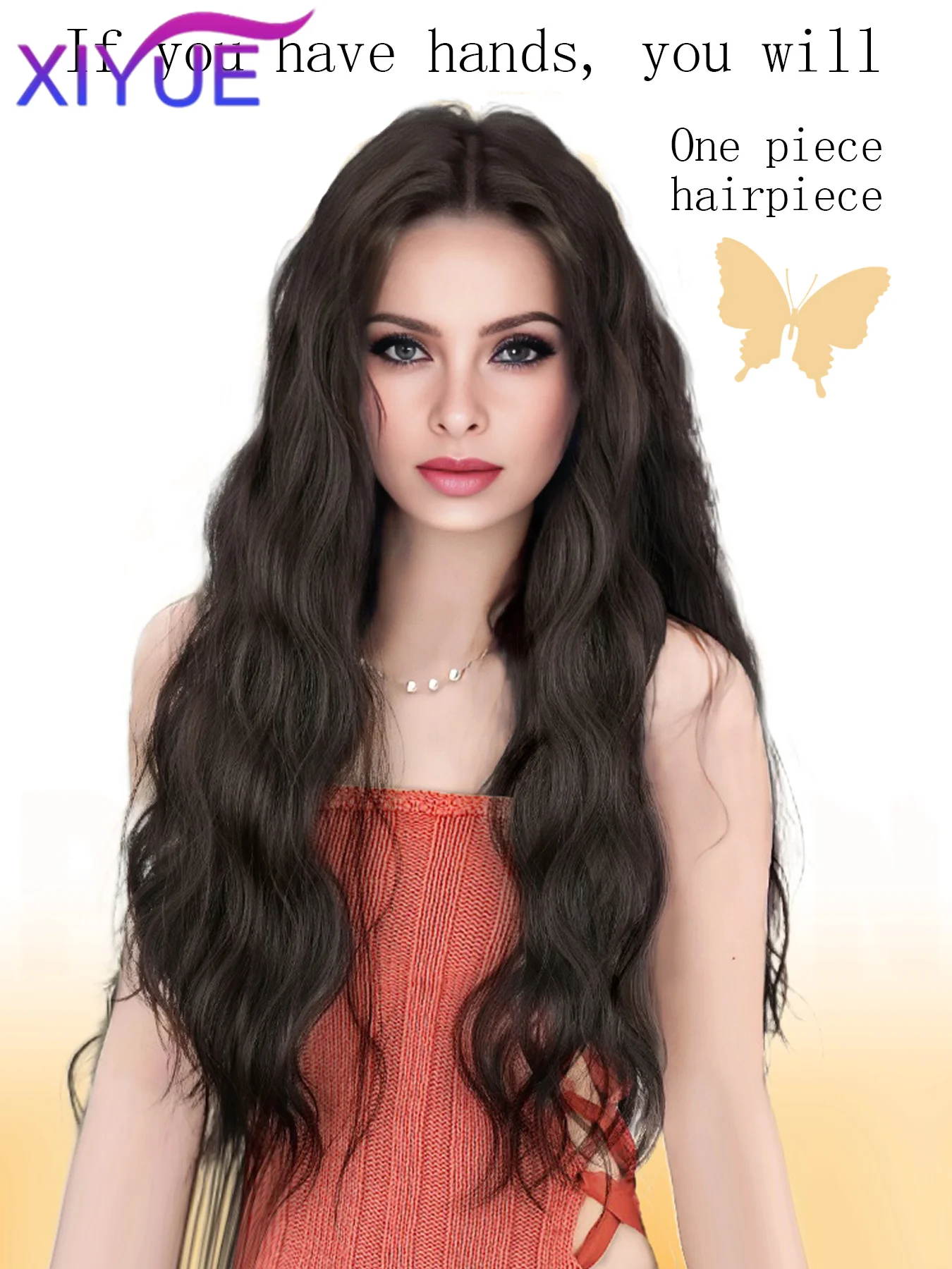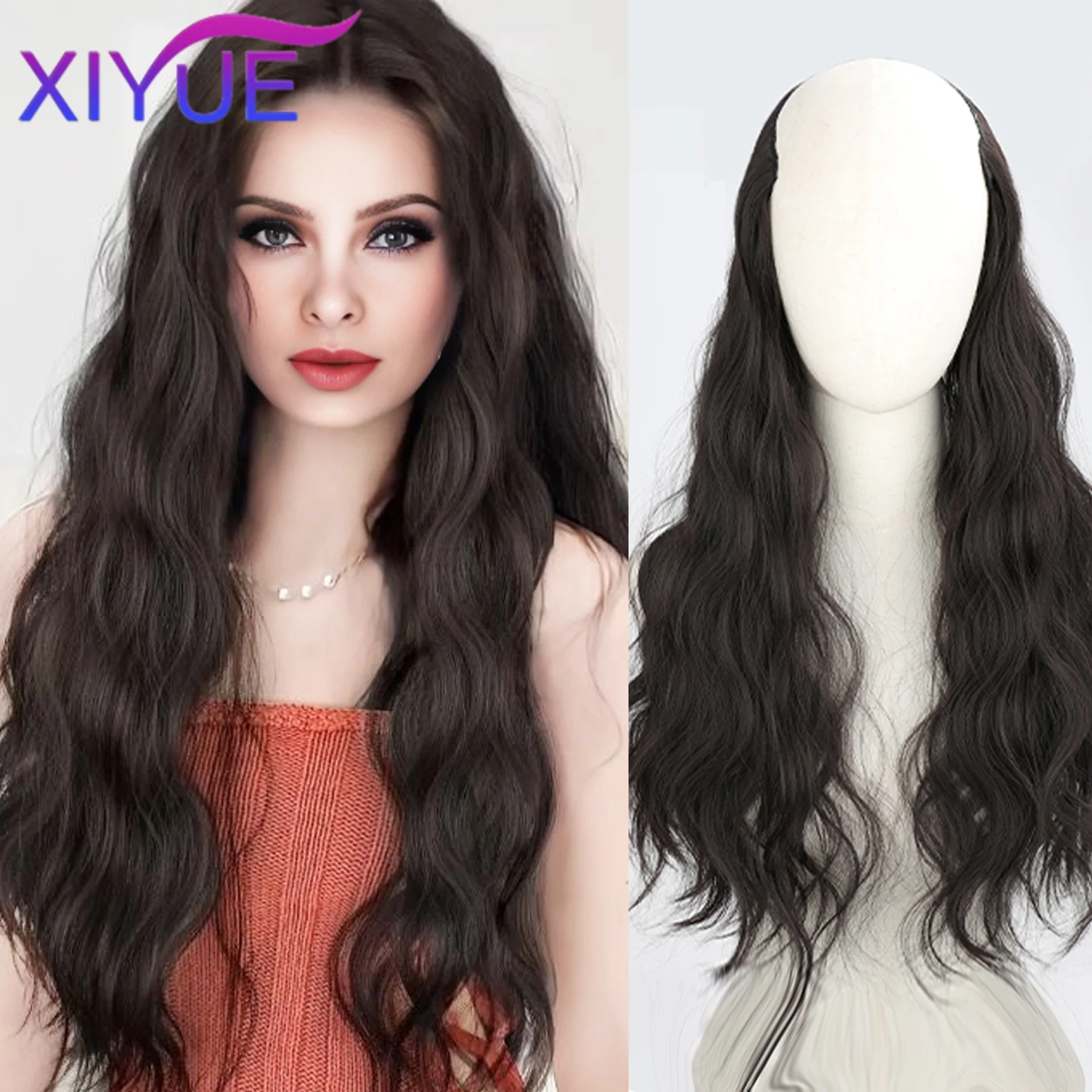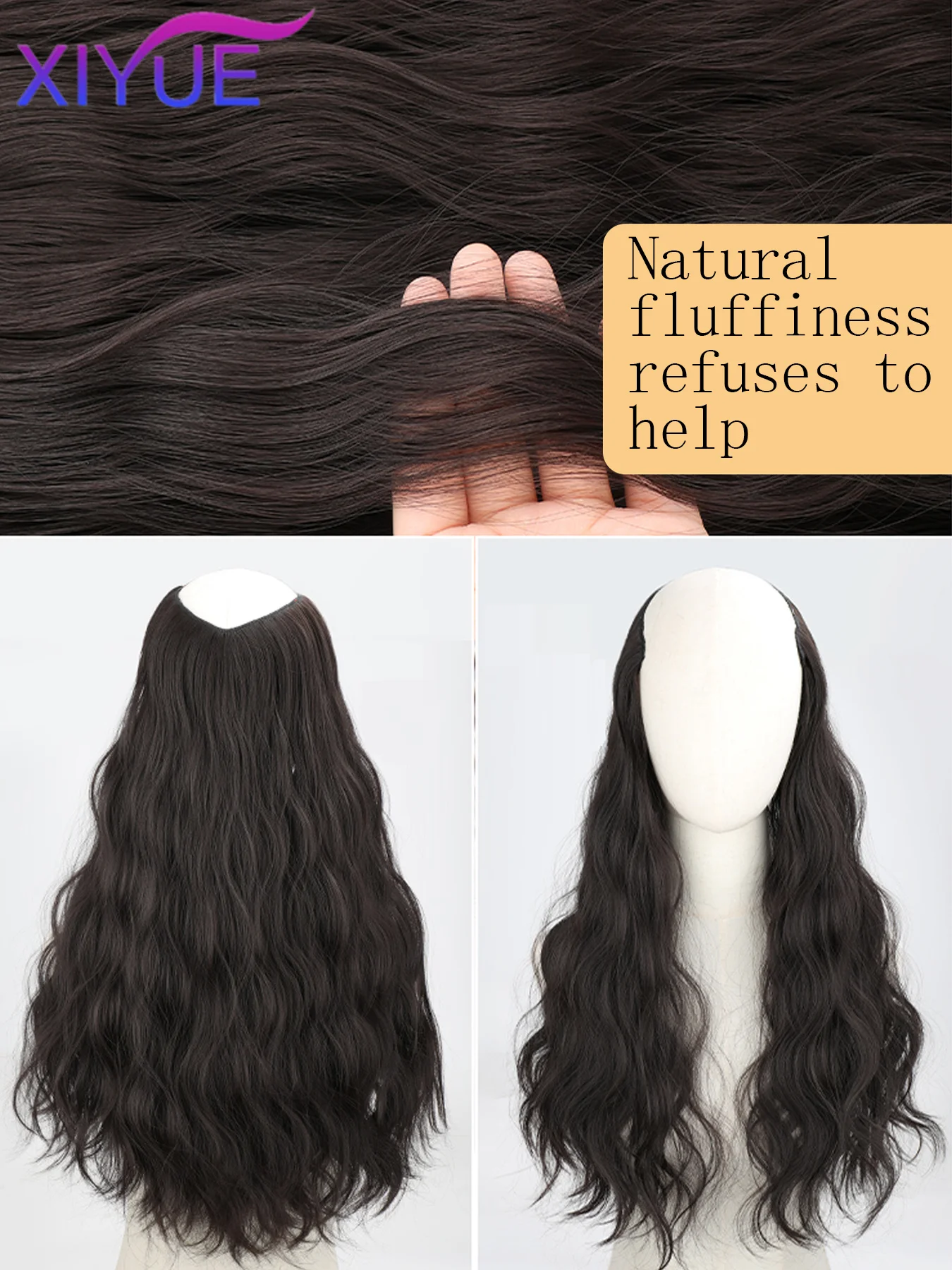 XIYUE Wig Inch Long Black Brown V-Shaped Half Wig Clip In One piece Water Wave Hair Extensions Synthetic Natural Hairpiece
