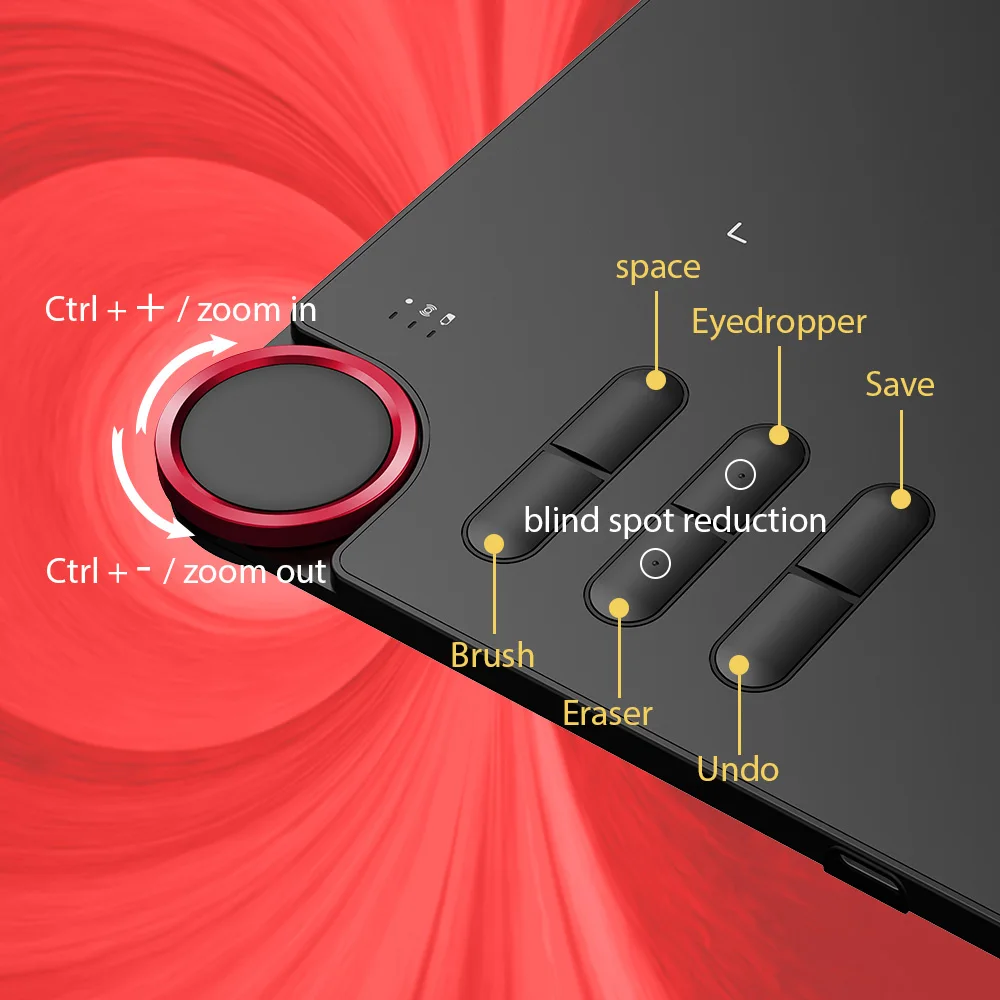 Deco 03 refines it even further with a multi-function Red Dial. Crafted from anodic oxidation aluminum for a satin-like finish, this Dial is designed to fit comfortably in your hand and break through the traditional graphics tablet design.