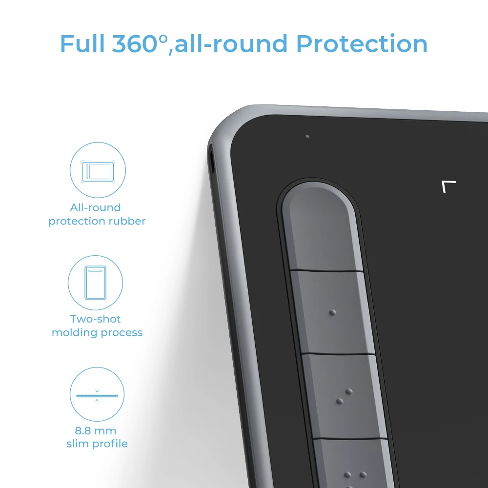 The rubber material around the edges, combined with a wear-resistant and shockproof design, provides all-around protection against accidental damage, leaving you to focus on your creativity instead of worrying about keeping your tablet protected.
