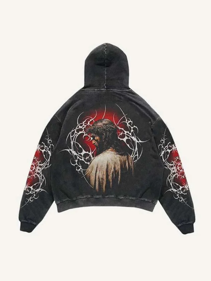 Y2K Spring and Autumn New Best-selling Printed Skull Hooded Sweater Retro Street Fashion Loose Hooded Sweater for Men and Women
