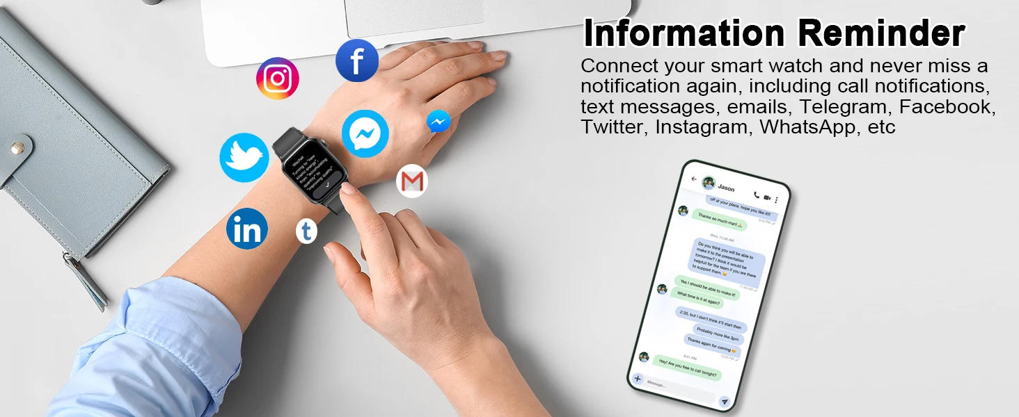Smart watch, wireless calling/dial, multi-Sport mode, information reminder, Various APP Reminders,for iPhone/Andriod
